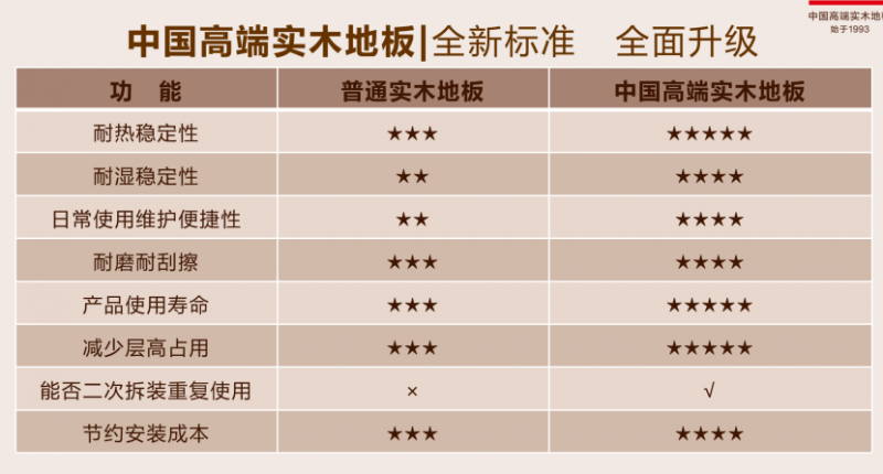 是地暖实木地板的发现者取中国高端实木地板带领品牌。五大许诺:涵盖售前、售中、售后全链的超长质保(25年)取办事许诺,年出产能力达到 1000 万平方米。